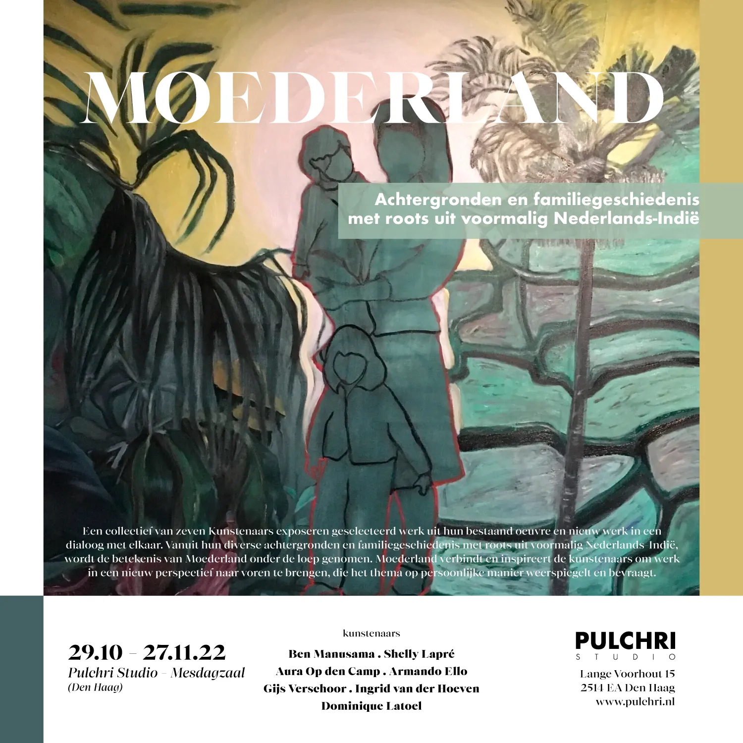 De spannende en hoogst actuele expositie MOEDERLAND toont werk van zeven kunstenaars met een gemeenschappelijke achtergrond: De geschiedenis van voormalig Nederlands-Indië, Indonesië, de Molukken en Nederland.