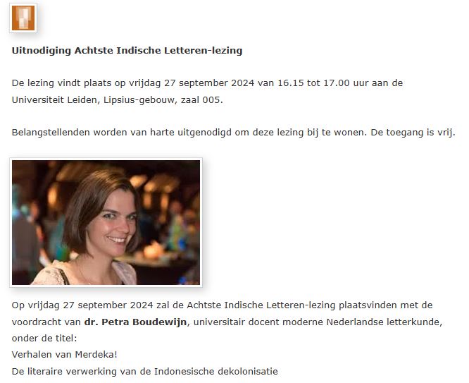Lezing “Verhalen van Merdeka!” 13 vrijdag sep 2024 Posted by Indisch Museum in Geen categorie ≈ Reacties uitgeschakeld voor Lezing “Verhalen van Merdeka!” Lees verder … Vind-ik-leuk Aan het laden... Gerelateerd