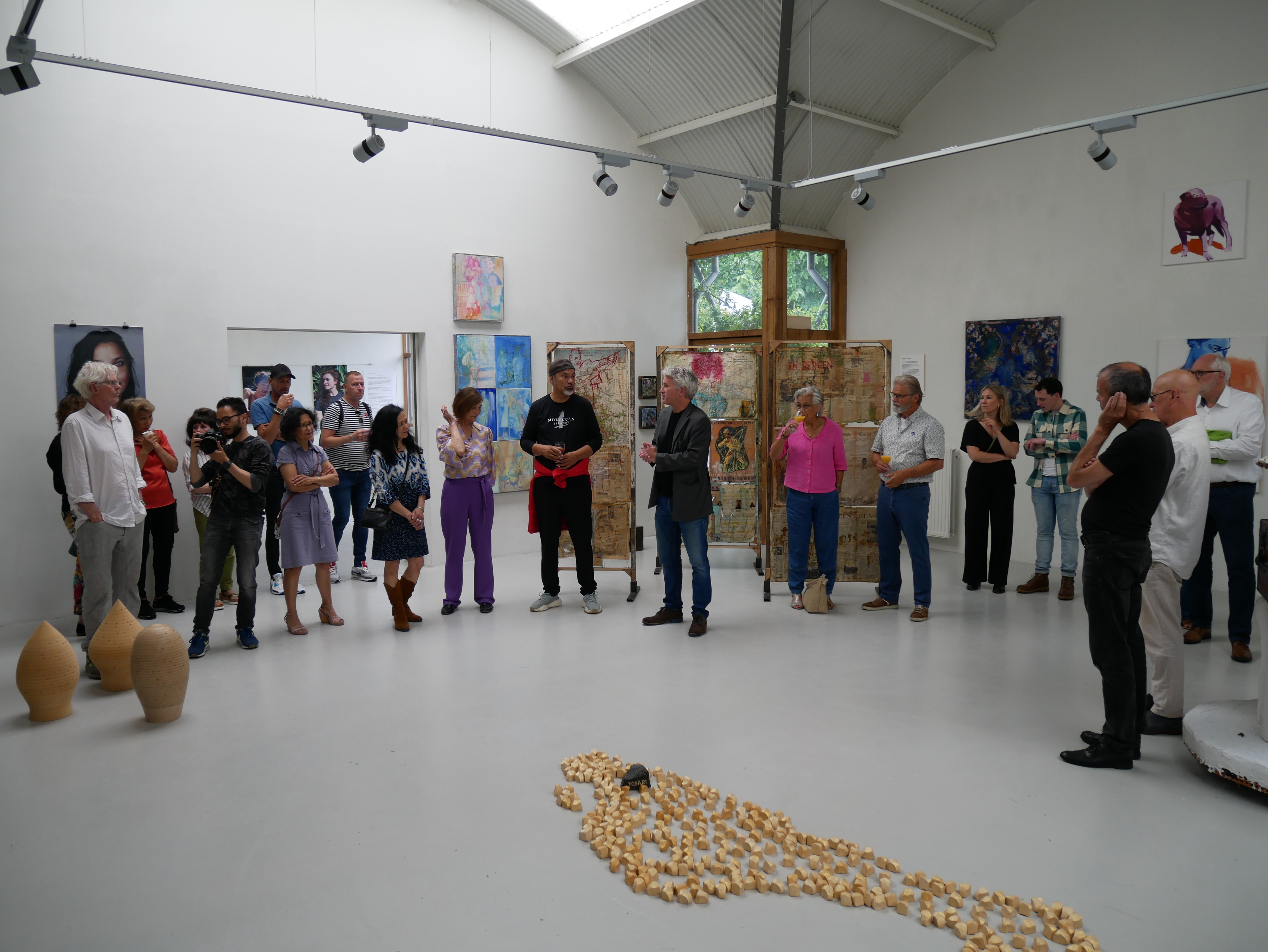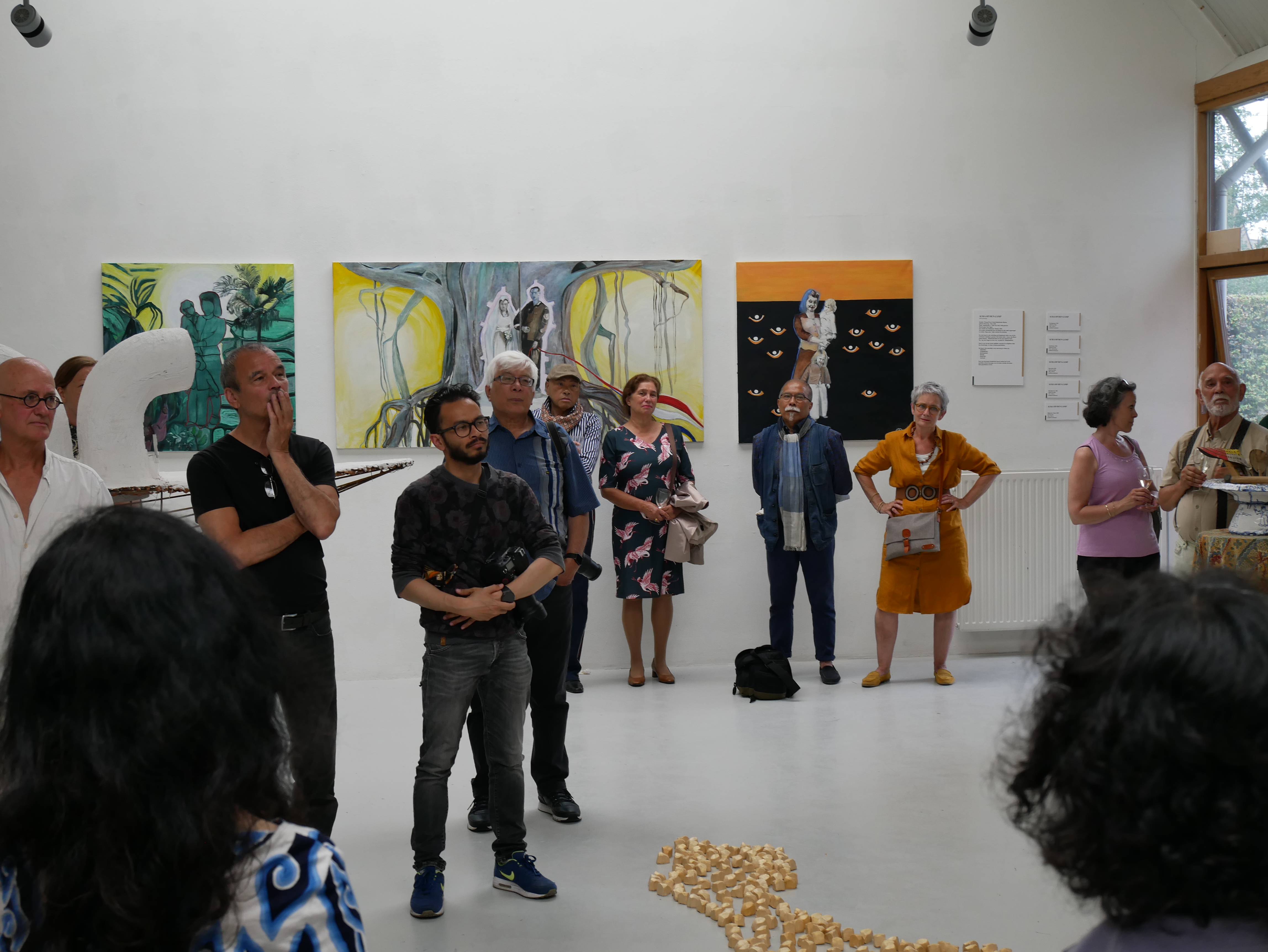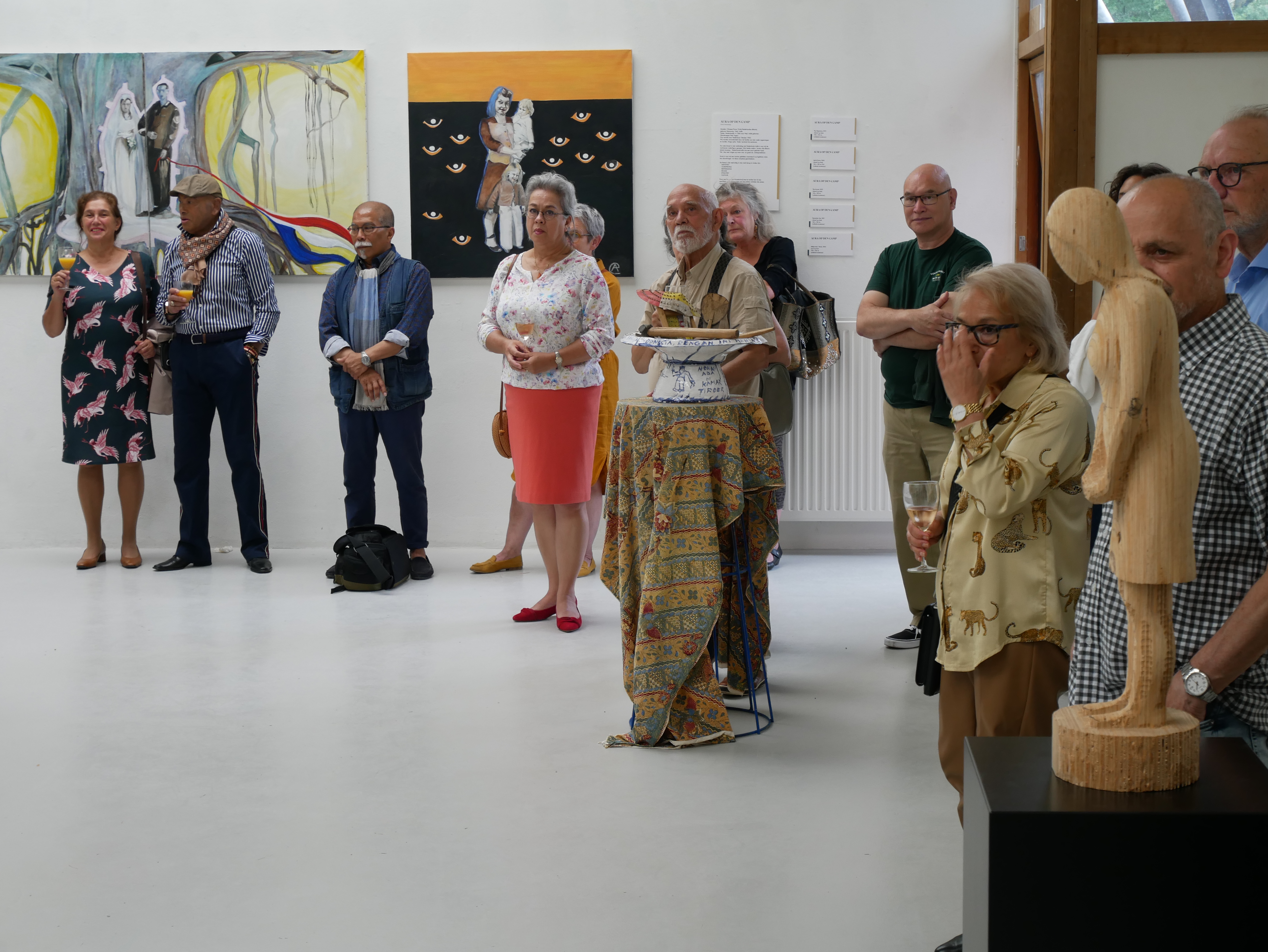 Historicus Victor Laurentius verrichtte de opening en liet de kunstenaars zelf aan het woord om hun motivatie en de betekenis en aanleiding van hun tentoongestelde werk toe te lichten.