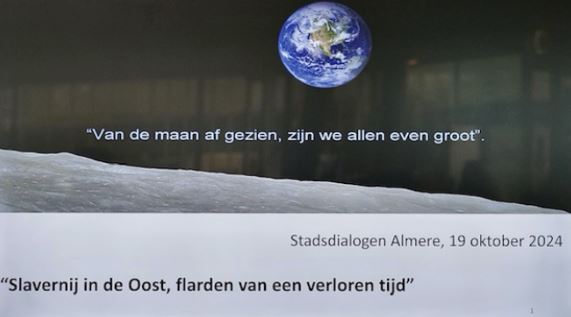 Een voor de gelegenheid sfeervol gedecoreerde zaal, een gevarieerd aanbod van Indische hapjes en drankjes en op de achtergrond klanken van oorsprong, vormden de ambiance voor de stadsdialoog over het slavernijverleden in de Oost (meer specifiek Nederlands-Indië) op 19 oktober 2024 in Casa Casla-Almere.