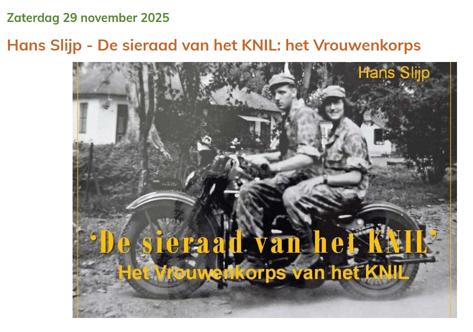 Bij toeval kwam Hans een aantal jaren geleden een mooie foto tegen van een vrouw in uniform, zittend achterop een motor. Na onderzoek bleek zij te behoren bij het legeronderdeel Het Vrouwenkorps van het KNIL (Koninklijk Nederlandsch-Indisch Leger). Hans ging de geschiedenis van het Vrouwenkorps verder uitzoeken..
