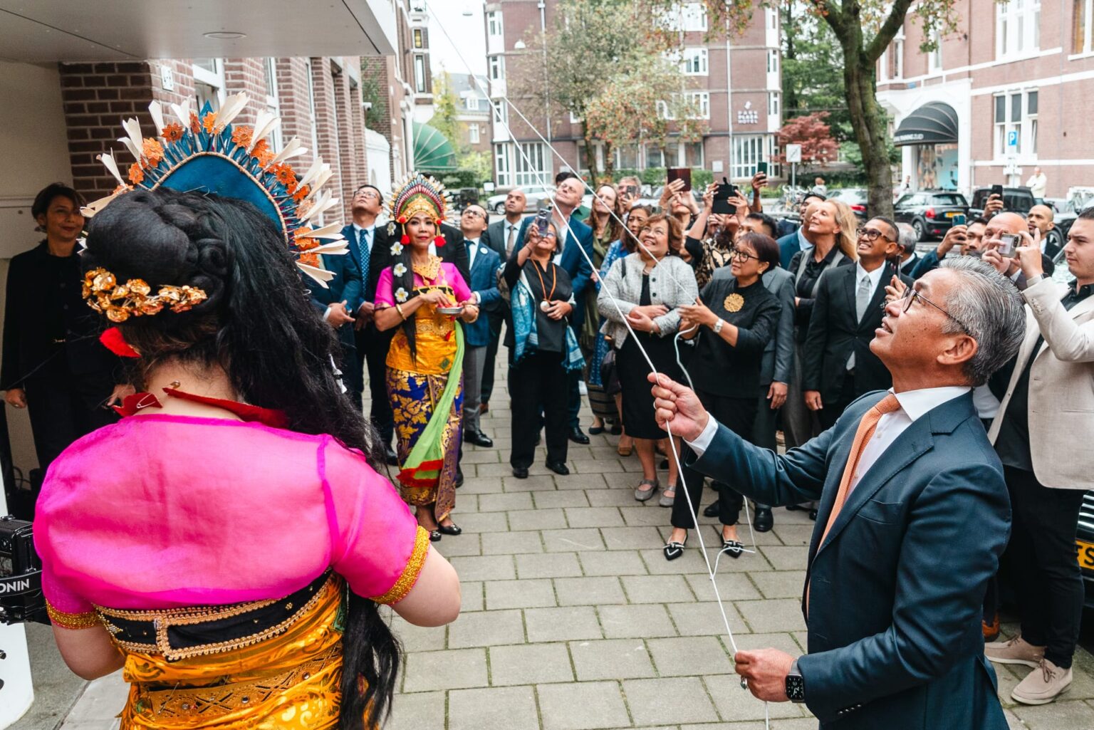 Amsterdam, 17 September 2024 – The Foreign Minister of the Republic of Indonesia, H.E. Retno L.P. Marsudi, alongside the Ambassador of the Republic of Indonesia to the Kingdom of the Netherlands, H.E. Mayerfas, unveiled the signboard of the newly renovated building on Brachthuijzerstraat 4 Amsterdam, in a symbolic ceremony of the official inauguration of Indonesia House Amsterdam. It is the biggest and the most multifaceted Indonesia’s Promotion Centre in Europe.