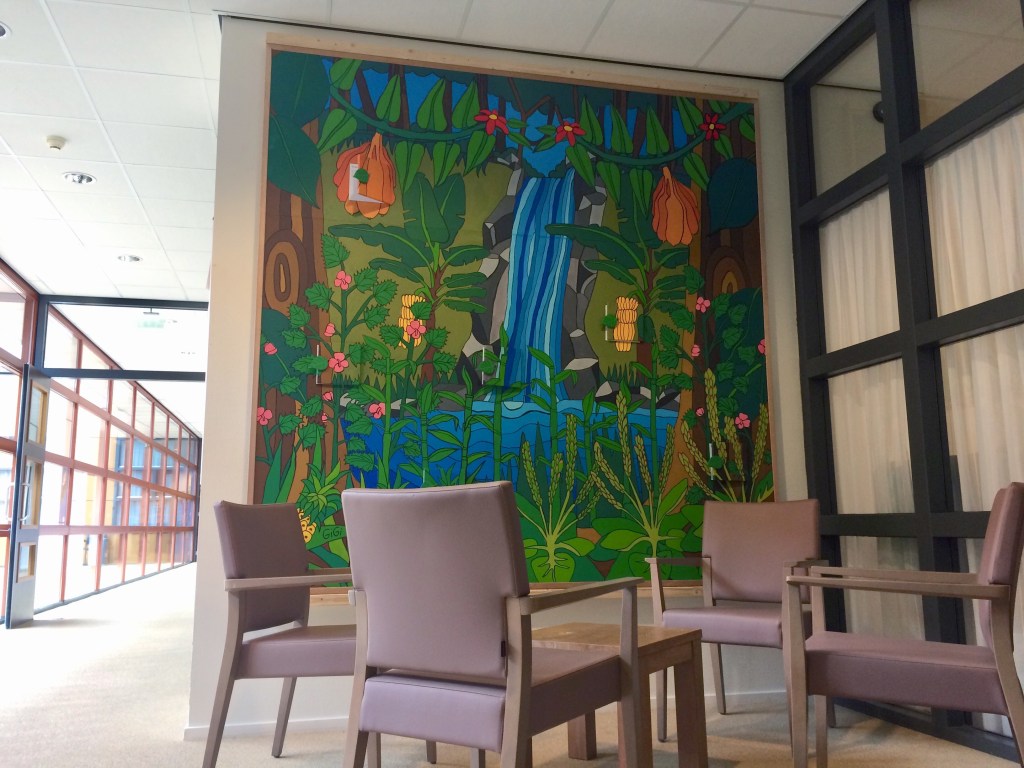 De muurschildering is geïnspireerd door haar eigen ervaringen tijdens een rondreis op Borneo, waar zij de impact van ontbossing voor palmolieplantages met eigen ogen zag. Het kleurrijke kunstwerk laat de schoonheid van het regenwoud zien, terwijl het tegelijkertijd een boodschap van bewustzijn overbrengt: als we niets doen, zullen deze landschappen verdwijnen. De muurschildering is nog steeds te bewonderen, want na haar afstuderen werd het schilderij verkocht en gedoneerd aan Verpleeghuis Rumah Kita. Een mooie en passende plek voor dit kleurrijke werk.