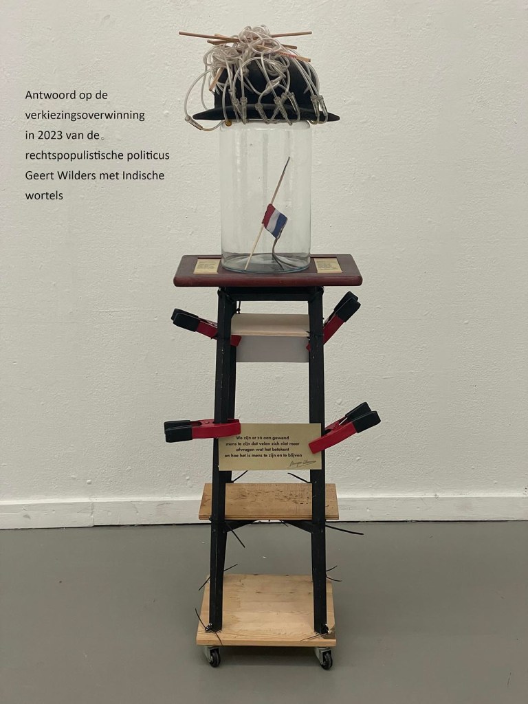 Wat mijn plek betreft: in de kunstwereld heb ik een eigen positie verworven, die hoef ik niet meer te verdedigen. Tegen de Indische kunstenaarsgemeenschap wil ik zeggen dat we af moeten van het idee dat we ‘niet gezien’ worden. We zitten overal. Het feit dat we onze stem niet verheffen wil niet zeggen dat er geen erkenning is.