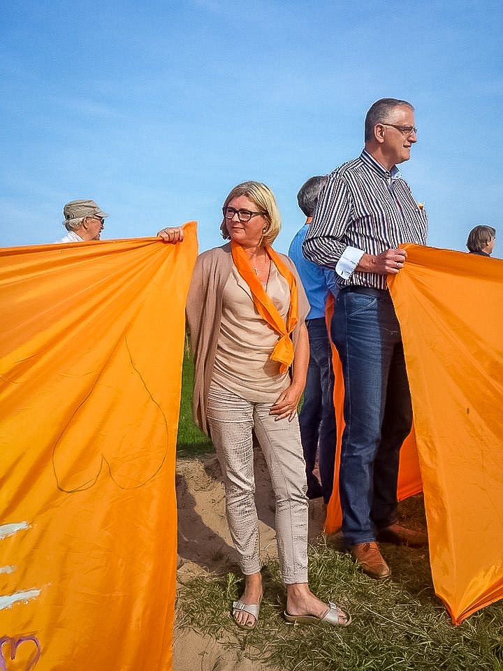 Mede op haar initiatief hielden op Bevrijdingsdag 5 mei 2014, zowel aan de noord- als de zuidoever van de Waal, dorpsbewoners een oranje lint van zeven kilometer lang vast, volgeschreven met hun vredeswensen. Het scheepvaartverkeer op de Waal werd op die dag stil gelegd om de oranjelinten midden op de rivier te verbinden. Zo ontstond vanuit de lucht gezien de letter V en daarmee het ‘Beeld van Oranje Linten’. Het was de aanzet tot een jaarlijks Bevrijdingsdagfestival aan de Waal, de uiteindelijke ‘Tour de Waal’. Zie ook: https://www.tourdewaal.nl/ [1]