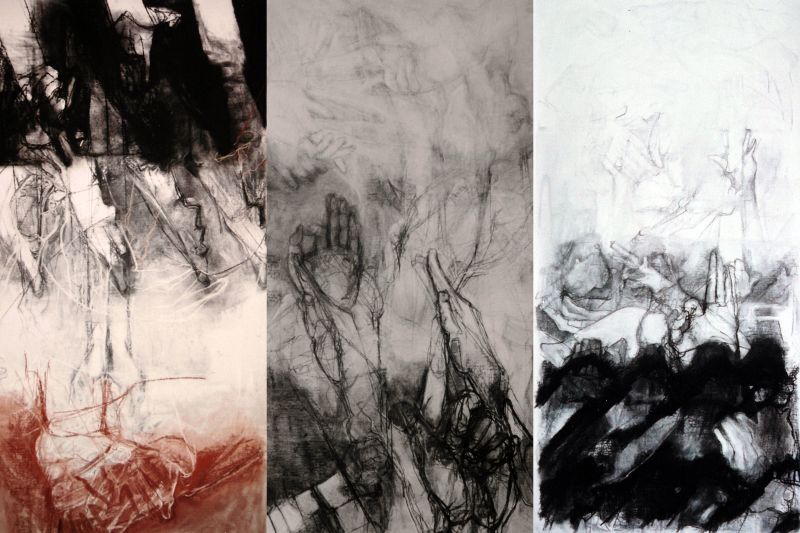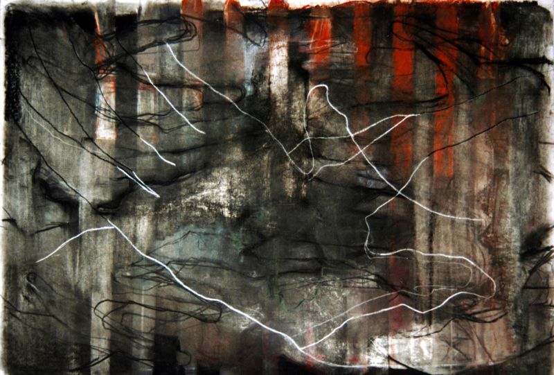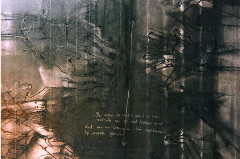 -Stappen I: Houtskool, potlood, pastel; 100 x 188 cm