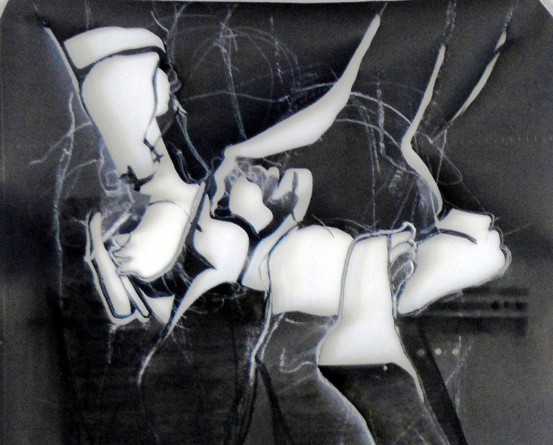 Rechts: Tekening op verduisteringspapier/uitgeknipt; 70 x 150 cm
