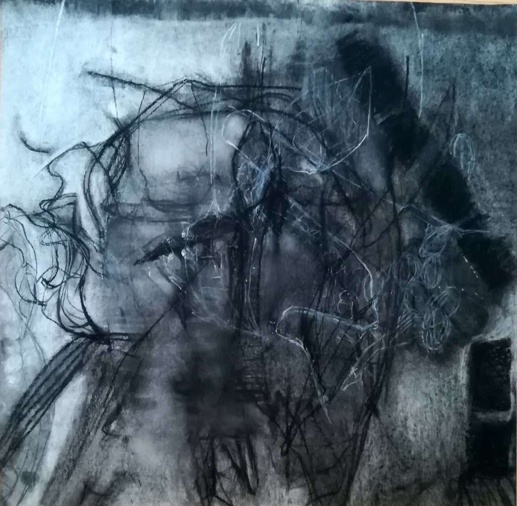 Rechts: NU II: Houtskool, pastel; 43 x 43 cm