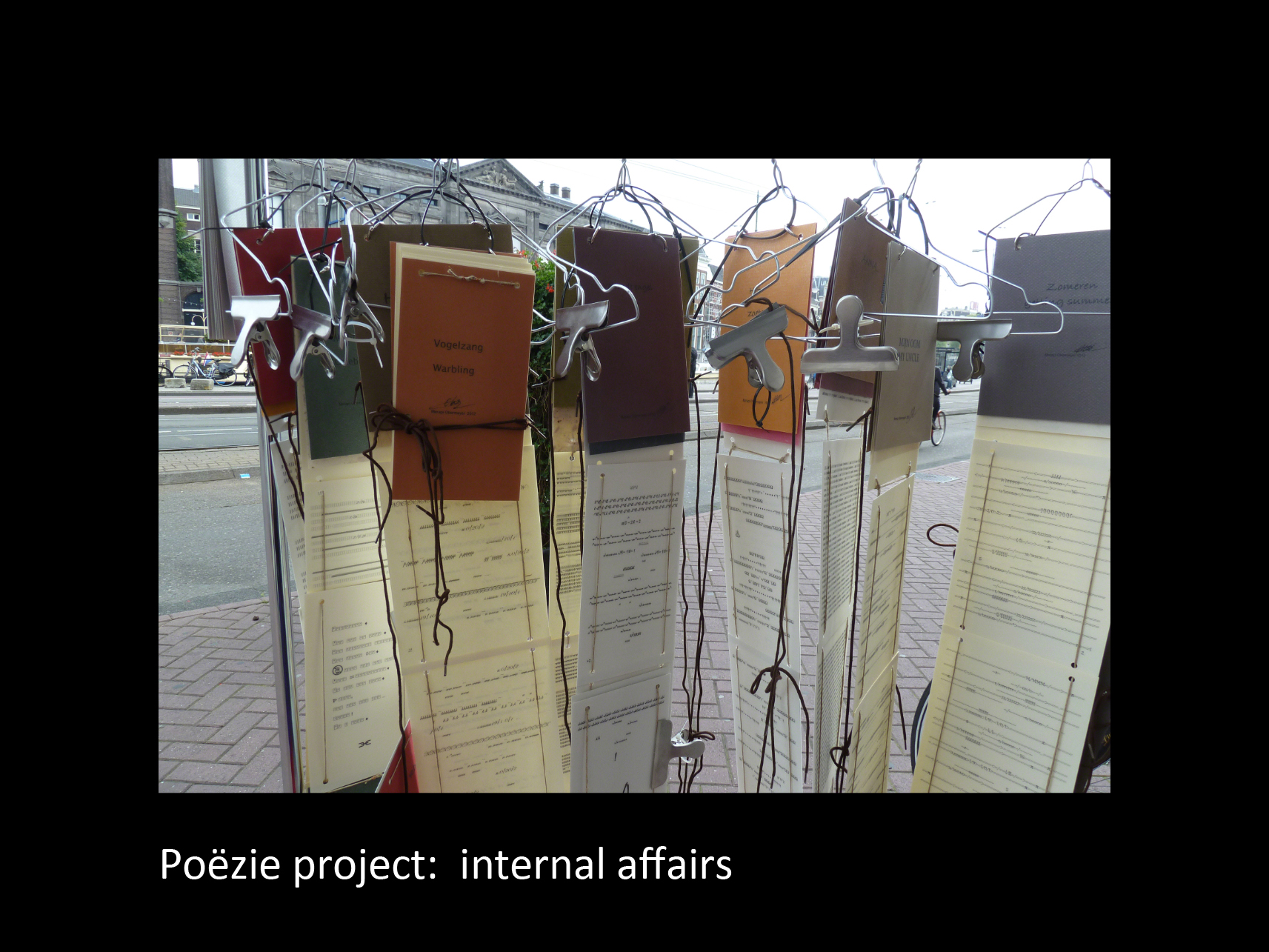 Schrijven is onderdeel geworden van mijn beeldende kunst. Ik maak woord en boekobjecten. Mijn poëzie zet ik om in een ‘symfonie’ van letters, getallen en tekens. Deze ‘symfonieën’ zijn een metafoor voor verhalen die de buitenwereld niet kunnen bereiken. Verhalen die niet verteld kunnen worden. Verhalen die vermalen worden door de molens van de bureaucratie. Wie veel geduld heeft kan de sleutel vinden om deze ‘symfonieën’ weer om te zetten in een leesbaar geheel.