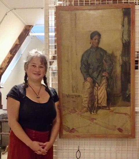 Arjanti bij het portret van mijn oudoom