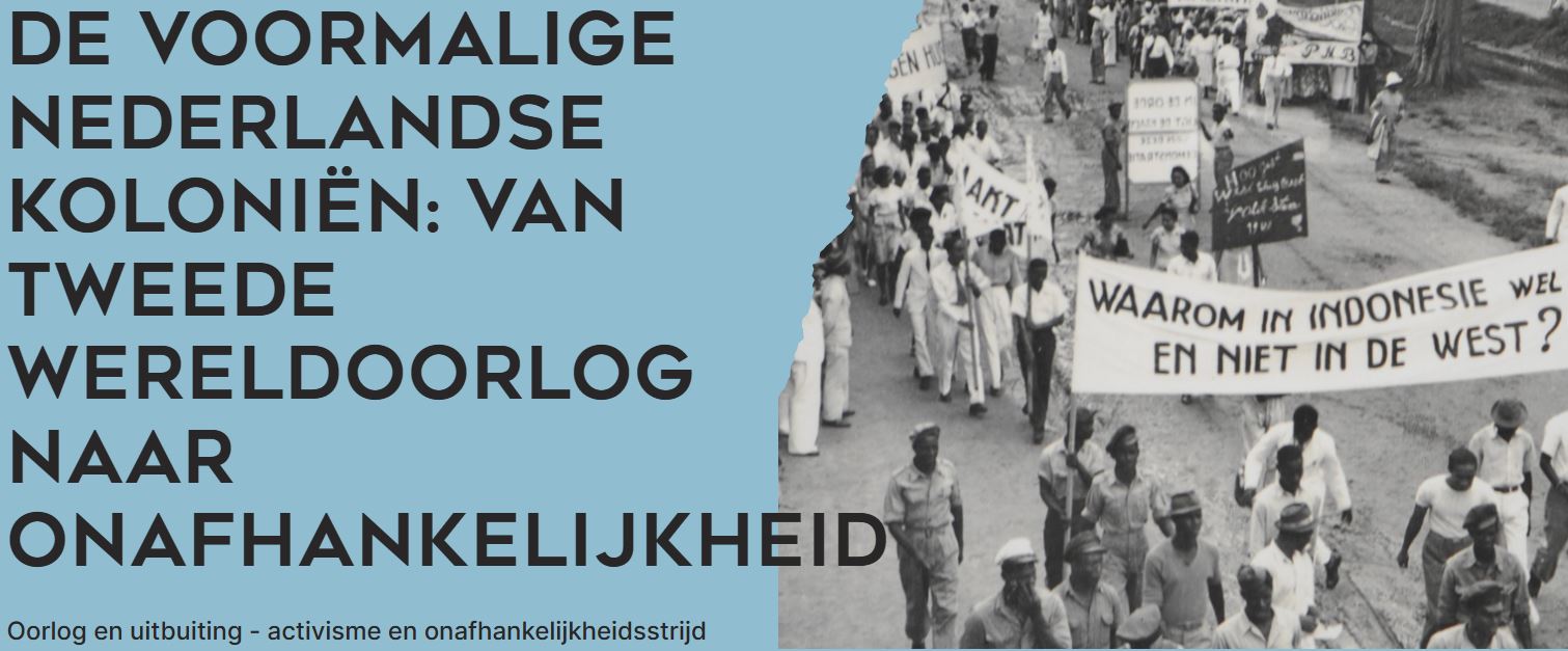 [Tvm]De tentoonstelling De voormalige Nederlandse koloniën: van Tweede Wereldoorlog naar onafhankelijkheid biedt een veelzijdige blik op de gebeurtenissen en bevolkingsgroepen tijdens de Tweede Wereldoorlog in de voormalig koloniën: Indonesië, Suriname en de zes Nederlands-Caribische eilanden.