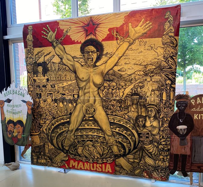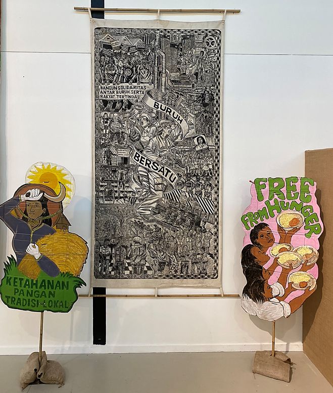 Voor enige uitleg over het tentoongestelde werk van Taring Padi, zie (pdf download in het Engels): https://framerframed.nl/wp-content/uploads/2023/06/Tanah-Merdeka-Featured-Works.pdf