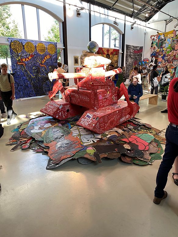 Prominent aanwezig is een schilderij met de titel “Anonim” die 2 bij 1,5 meter groot is.
