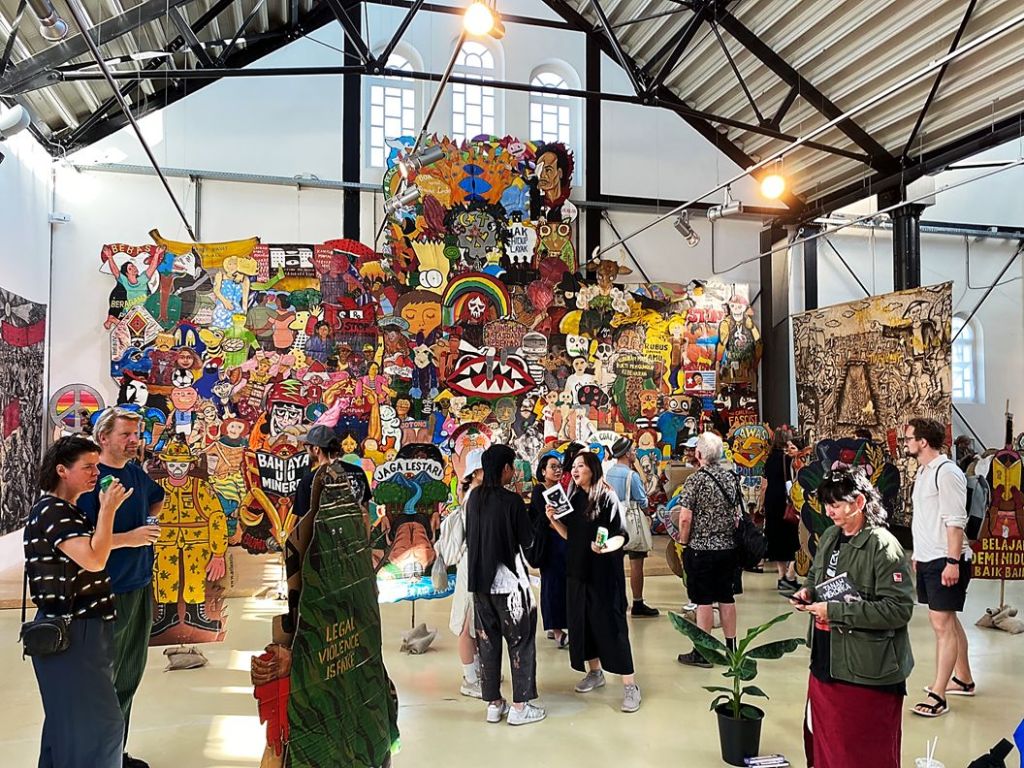 Zaterdag 24 juni 2023 waren Fenny, Doric en Hans Arends (zie zijn interview met Obbe Norbruis: https://indischmuseum.com/interview-met-obbe-norbruis/) bij Framer Framed voor de opening van twee tentoonstellingen. Die van Theo Frids Hutabarat genaamd “Anonim” en die van het collectief Taring Padi met als titel “Tanah Merdeka”. In twee verschillende zalen.
